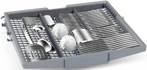 Возможность разместить внизу более грязную посуду, а сверху менее загрязненную. Ее можно одновременно мыть с одинаковой эффективностью.