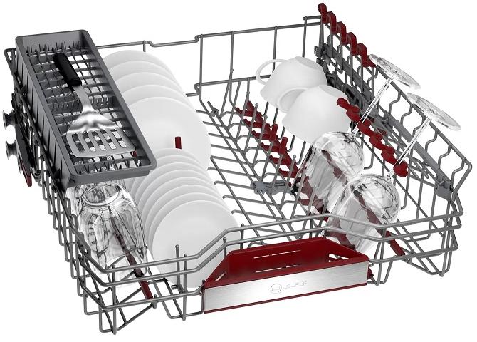 Встраиваемая модель Нефф отлично впишется в любой интерьер, главное — правильно выбрать место, чтобы подвести коммуникации. Устанавливается в нишу целиком, полностью закрывается декоративной панелью. Обратите внимание: в комплекте не идет фасад, его необходимо установить самостоятельно. Имеет стандартные размеры, поэтому может не поместиться на очень маленькой кухне. В камеру можно загрузить ограниченное число комплектов: 13 шт. Комплектом считается набор посуды на одного человека, который нужен для полноценного приема пищи: глубокая и плоская тарелки, тарелка для салата, блюдце под чашку, сама чашка, ложка и вилка.