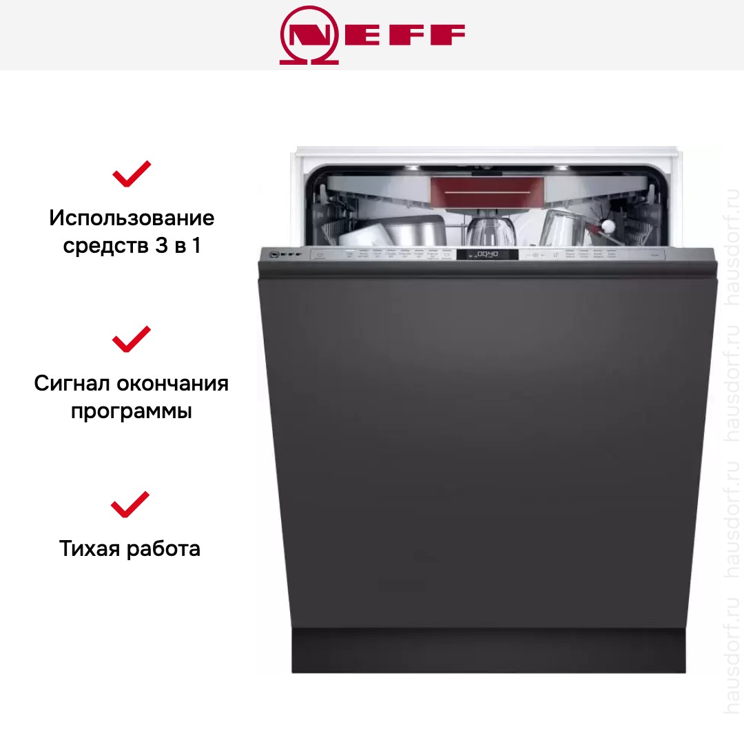 Посудомоечная машина Neff S157ZCX35E — это широкий функционал и высокий уровень безопасности. Устройство устанавливается в специальную нишу, а на фасад навешивается мебельный фасад кухонного гарнитура, поэтому устройство остается невидимым для глаз пользователя, поэтому подойдет для любых интерьерных решений. Отличная вместимость — 14 комплектов посуды — еще одно преимущество изделия. В корзину легко помещаются нестандартной формы посуда и крупногабаритные предметы. На выбор доступны как температурные режимы, так и стандартные программы, поэтому можно подобрать оптимальный вариант, исходя из поставленных задач. Наличие индикатора, который демонстрирует остаточное время цикла в минутах — полезное дополнение к функциональному оснащению посудомоечной машины Нефф S157ZCX35E. Устройство может управляться через приложение Home Connect.