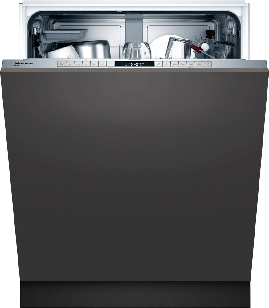 Посудомоечные машины производства известного немецкого бренда Neff разработаны для полной интеграции в интерьер современной кухни. Эти встраиваемые устройства выпускаются в двух вариантах: узкие — шириной 45 см и вместимостью 8-10 комплектов посуды — и полноразмерные — шириной 60 см и вместимостью до 14 комплектов посуды. Все модели предназначены для установки на них декоративного мебельного фасада, полностью соответствующего выбранному стилю.