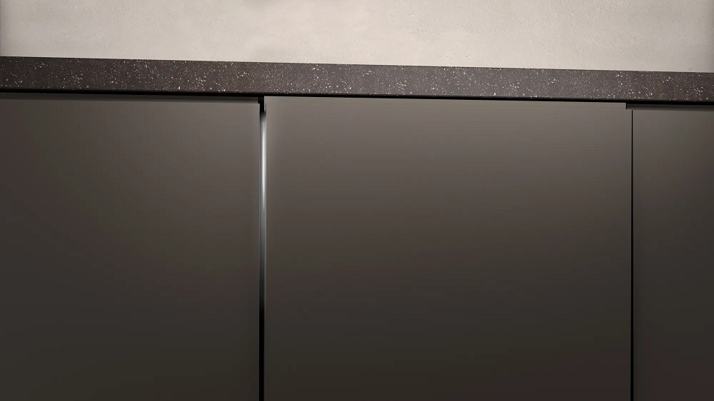 На двери нет ручки, она открывается нажатием на верхнюю часть. Модели с этой технологией подходят дизайну, в котором все должно быть без стыков и выступающих элементов.