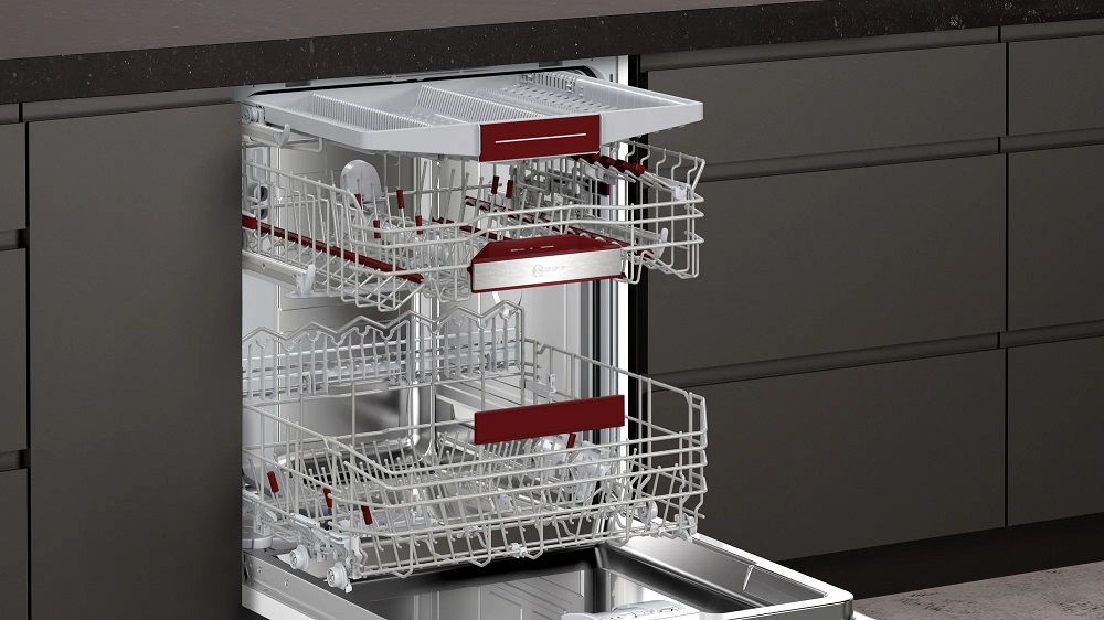 Встраиваемая модель Нефф отлично впишется в любой интерьер, главное — правильно выбрать место, чтобы подвести коммуникации. Устанавливается в нишу целиком, полностью закрывается декоративной панелью. Обратите внимание: в комплекте не идет фасад, его необходимо установить самостоятельно. Имеет стандартные размеры, поэтому может не поместиться на очень маленькой кухне. В камеру можно загрузить ограниченное число комплектов: 14 шт. Комплектом считается набор посуды на одного человека, который нужен для полноценного приема пищи: глубокая и плоская тарелки, тарелка для салата, блюдце под чашку, сама чашка, ложка и вилка.