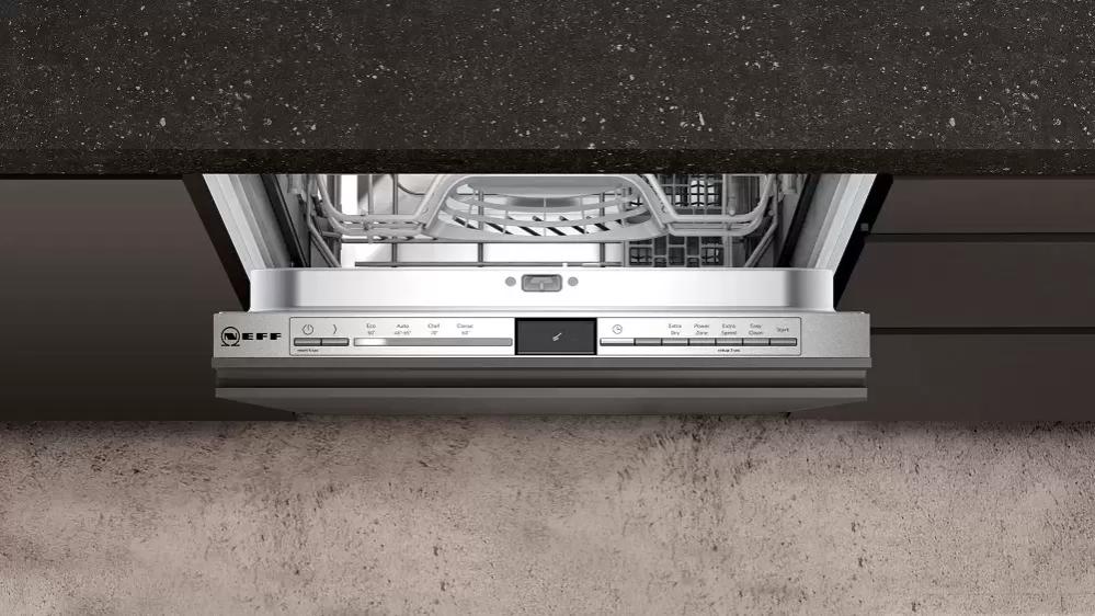 Встраиваемая модель Нефф отлично впишется в любой интерьер, главное — правильно выбрать место, чтобы подвести коммуникации. Устанавливается в нишу целиком, полностью закрывается декоративной панелью. Обратите внимание: в комплекте не идет фасад, его необходимо установить самостоятельно. Имеет уменьшенную ширину — благодаря этому поместится даже на очень маленькой кухне. В камеру можно загрузить ограниченное число комплектов: 9 шт. Комплектом считается набор посуды на одного человека, который нужен для полноценного приема пищи: глубокая и плоская тарелки, тарелка для салата, блюдце под чашку, сама чашка, ложка и вилка.