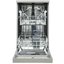 Отдельностоящая посудомоечная машина в серебристом корпусе шириной 45 см. Несколько уровней защиты — блокировка управления, контроль протечек и нагрева — делают модель удобной и безопасной. Посуду легко загрузить в регулируемую по высоте корзину и лоток для столовых приборов.