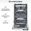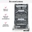 Узкая посудомоечная машина для полного встраивания в нишу. Камера вмещает до 10 комплектов, вы можете размещать посуду в подвижной корзине, использовать складной лоток для столовых приборов. Четыре температурных режима обеспечивают мойку при температуре воды от 40°С до 70°С. Восемь стандартных программ включают гигиеническую мойку детской посуды, обработку от аллергии, интенсивный режим для сильных загрязнений, быстрый продолжительностью 30 минут, экономичную и деликатную мойку, режим половинной загрузки.