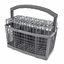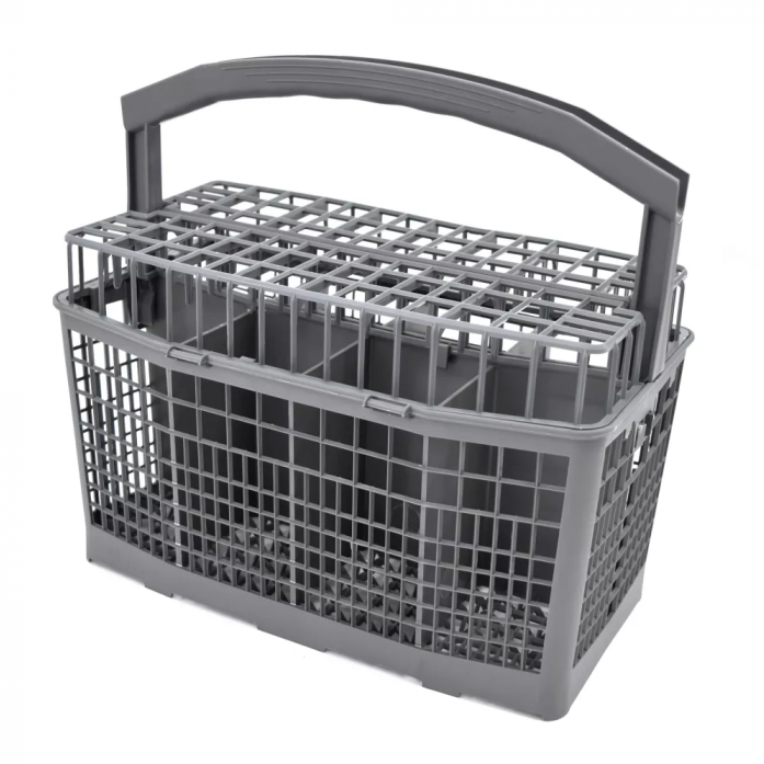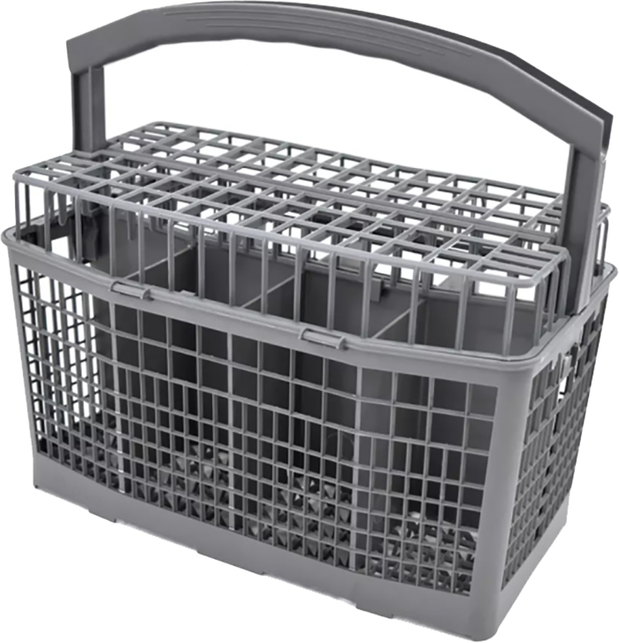 Корзина для столовых приборов — один из обязательных аксессуаров, которыми оснащается любая посудомоечная машина. Она представляет собой сетчатый пластиковый органайзер, в котором устанавливаются в вертикальном положении ложки, ножи и вилки. Корзина, как правило, разделяется на отдельные отсеки, в каждый из которых можно поместить один или несколько предметов. Зачастую сверху она закрывается специальной крышкой, которая также служит для разделения приборов, способствуя более тщательному их мытью.