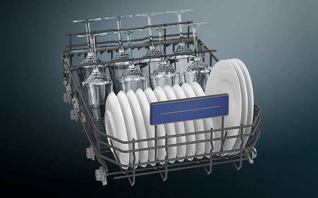 Встраиваемая модель Сименс отлично впишется в любой интерьер, главное — правильно выбрать место, чтобы подвести коммуникации. Устанавливается в нишу целиком, полностью закрывается декоративной панелью. Обратите внимание: в комплекте не идет фасад, его необходимо установить самостоятельно. Имеет уменьшенную ширину — благодаря этому поместится даже на очень маленькой кухне. В камеру можно загрузить ограниченное число комплектов: 10 шт. Комплектом считается набор посуды на одного человека, который нужен для полноценного приема пищи: глубокая и плоская тарелки, тарелка для салата, блюдце под чашку, сама чашка, ложка и вилка.