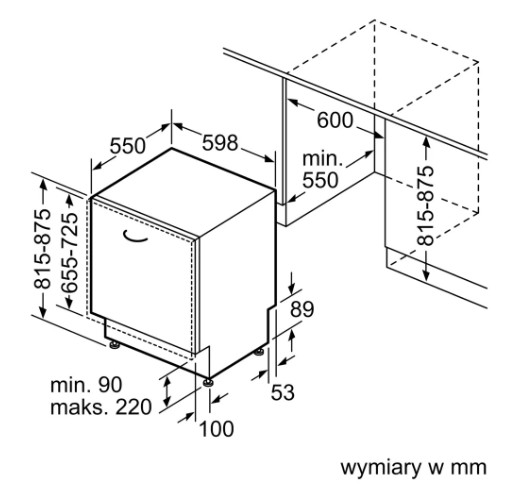 Встраиваемые устройства устанавливаются в тумбу или нишу мебельного гарнитура. В случае, если они полностью закрыты мебельным фасадом, машины считаются полностью встраиваемыми. Такое размещение позволяет сохранить единый стиль интерьера. Панель управления их также скрыта — чтобы начать работу и задать программу, дверцу придется открыть.