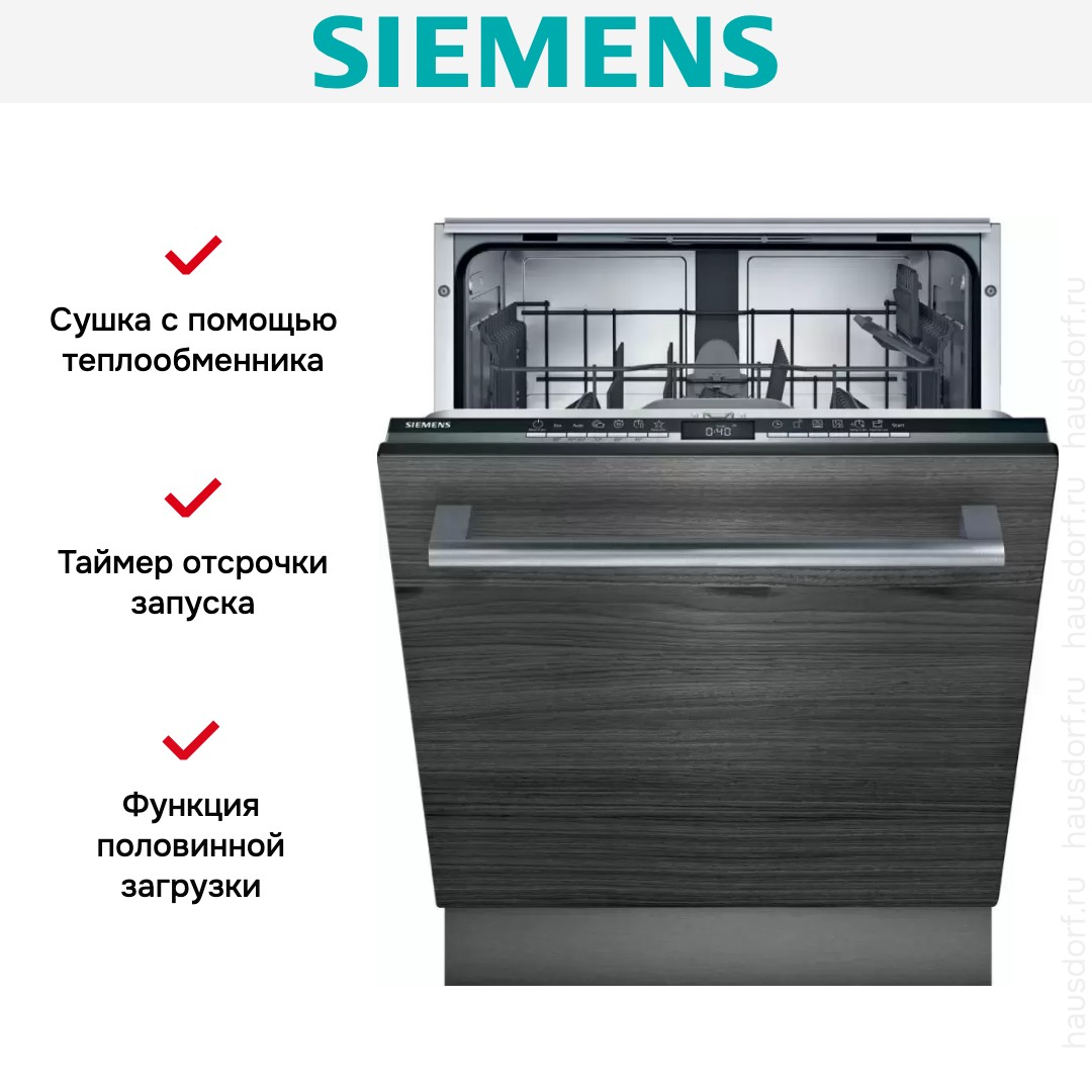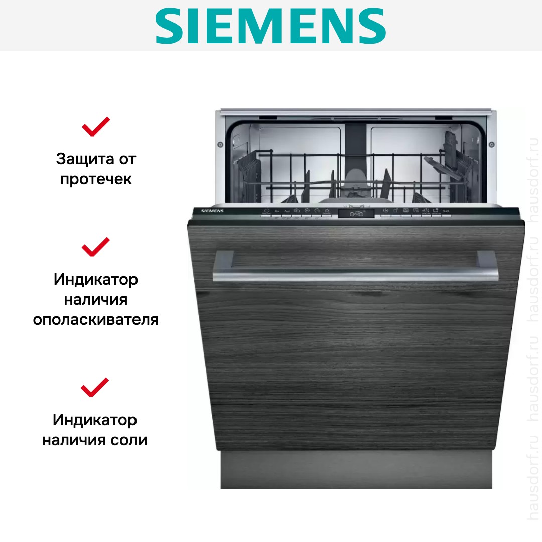 Встраиваемая модель Сименс отлично впишется в любой интерьер, главное — правильно выбрать место, чтобы подвести коммуникации. Устанавливается в нишу целиком, полностью закрывается декоративной панелью. Обратите внимание: в комплекте не идет фасад, его необходимо установить самостоятельно. Имеет стандартные размеры, поэтому может не поместиться на очень маленькой кухне. В камеру можно загрузить ограниченное число комплектов: 12 шт. Комплектом считается набор посуды на одного человека, который нужен для полноценного приема пищи: глубокая и плоская тарелки, тарелка для салата, блюдце под чашку, сама чашка, ложка и вилка.