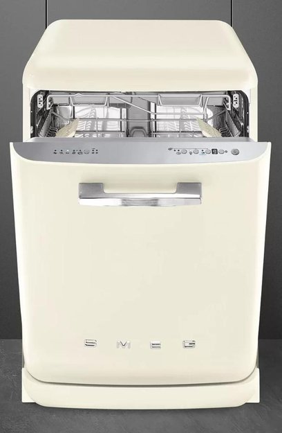 Оригинальная большая модель белого цвета с округлым корпусом относится к известной дизайн-серии в стиле 50-х годов. Петли FlexyFit с балансировкой позволяют при открывании дверцы оставить ее в любом положении. Скрытый нагревательный элемент предохраняет камеру от появления накипи. Пять традиционных программ мытья предназначаются для замачивания, мойки с экономией электроэнергии, использования в ночное время с уменьшением уровня шума на 2 дБ, более тщательного мытья с ополаскиванием при высокой температуре 70 градусов. Пять программ ускоренной мойки позволяют сократить длительность цикла до 27 минут. Дисплей на панели управления отображает продолжительность программы и время до окончания цикла. Таймер помогает задать отсрочку запуска на срок до 9 часов, при этом от возникновения затхлого запаха посуду предохраняет автоматическое споласкивание. Конденсационная сушка в сочетании с автоматическим открыванием дверцы в конце цикла позволяет получить на выходе абсолютно сухую посуду без разводов и капель. С опцией FlexiTabs можно использовать для мытья таблетки типа «три в одном». Опция FlexiZone предназначается для работы при половинной загрузке.