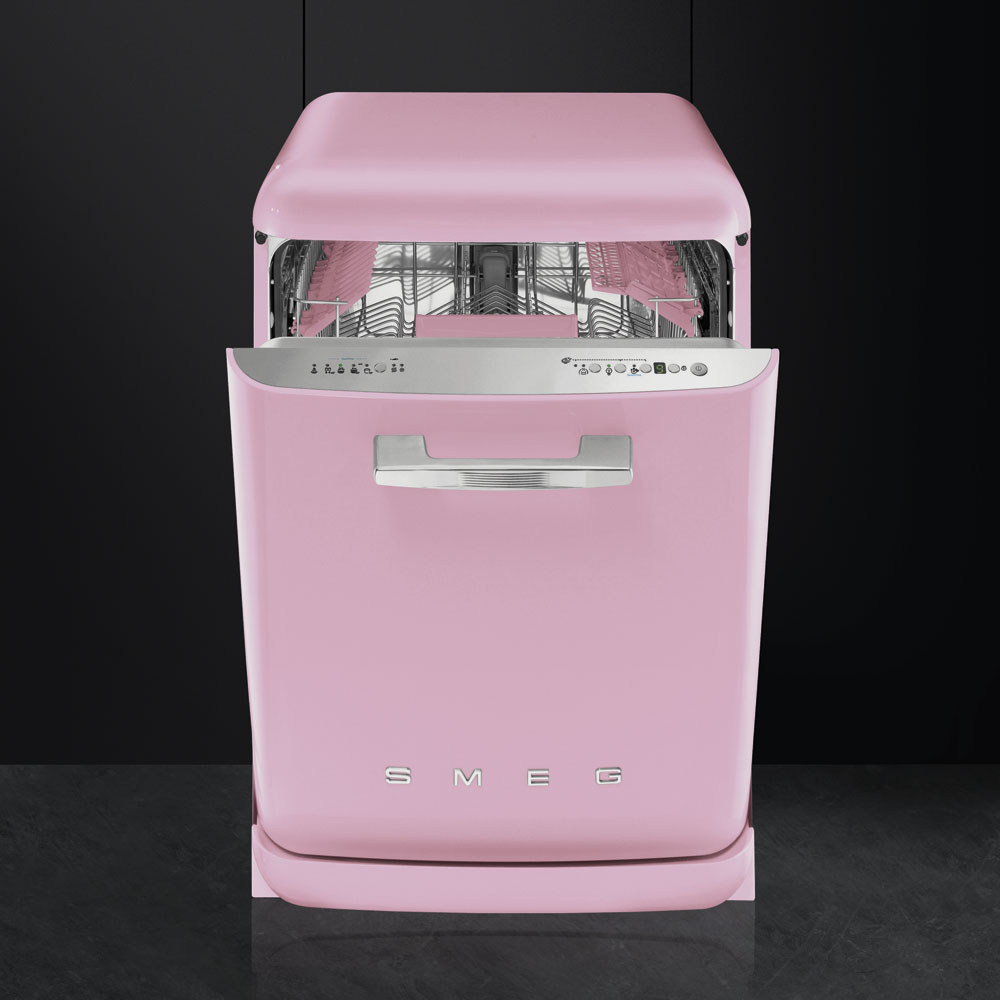 Еще один популярный оттенок фасада — серебристый или стальной, однако при выборе такой машины следует убедиться, что имеется в виду именно фронт машины, а не панель управления. Приборы ярких оттенков до сих пор остаются большой редкостью. Пользователь может обратить внимание на ПММ производства итальянской фирмы Smeg из ретро-коллекции в стиле 50-х годов — отдельностоящие модели в корпусе красного, оранжевого, зеленого, желтого, голубого цветов. Посудомойки бежевого цвета со стильной латунной фурнитурой выпускает германская фирма Kaiser. Скандинавская компания Asko предлагает посудомойки с фасадами редких оттенков — серого и «титан».