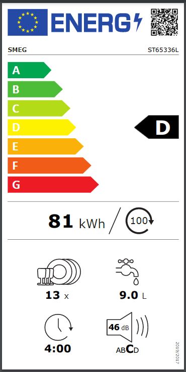 Smeg ST65336L — полностью встраиваемая посудомоечная машина вместимостью 13 комплектов посуды. Предусмотрено 10 традиционных программ, среди которых замачивание, интенсивная, ECO, Normal, Супер тихая и др. Оснащена дисплеем, с помощью которого можно настраивать отсрочку включения и следить за работой устройства. Машина оснащена конденсационной сушкой, а опция EnerSave позволяет автоматически открыть дверцу по окончании цикла. Посуда при этом высыхает при естественном поступлении воздуха и не приобретает неприятного запаха. Для различных типов посуды предусмотрены семь температурных режимов от 38°С до 75°С. Скрытый нагревательный элемент исключает появление накипи. Внутренняя камера изготовлена из нержавеющей стали и устойчива к перепадам температуры.