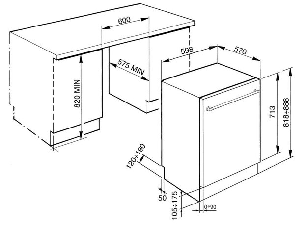 Большая часть полноразмерных и узких посудомоек встраиваемого и отдельностоящего вида имеет высоту около 82-85 см: такие модели легко размещаются под столешницей. Встраиваемые модели несколько ниже, так как у них отсутствует верхняя крышка.