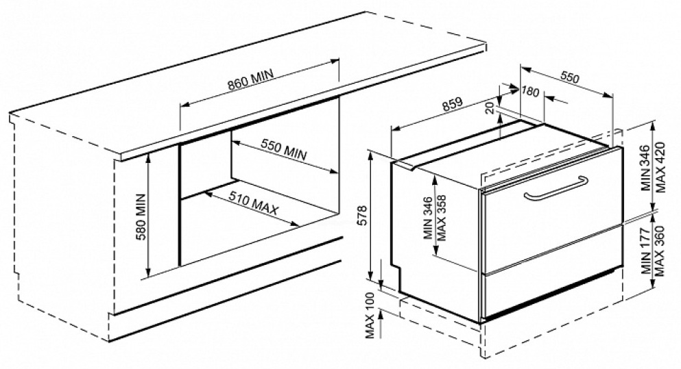Многие отдельностоящие приборы отличает высота 85 см, однако они оснащаются съемной крышкой, что также позволяет устанавливать их под столешницей. Высоту можно немного изменить при помощи регулируемых ножек — это касается в основном встраиваемых моделей.