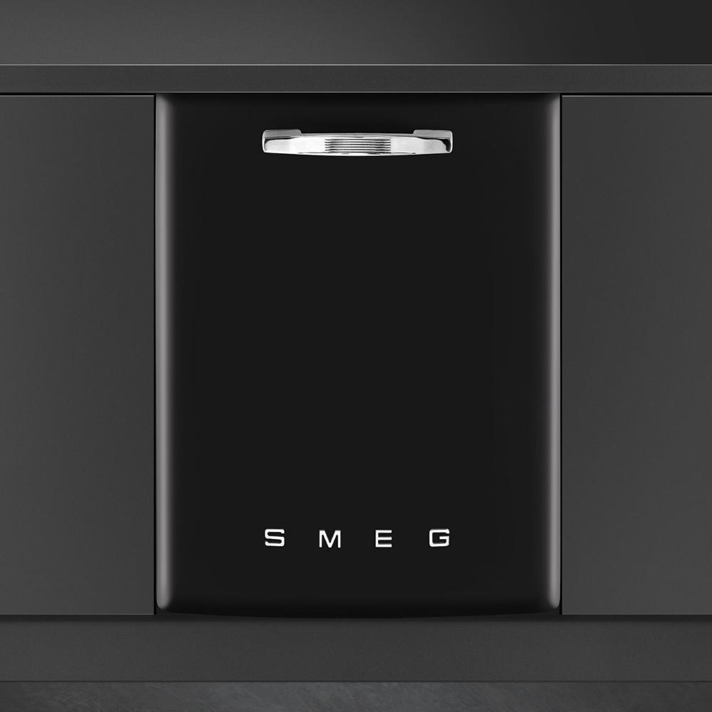 Встраиваемая модель Смег отлично впишется в любой интерьер, главное — правильно выбрать место, чтобы подвести коммуникации. Устанавливается в нишу целиком, полностью закрывается декоративной панелью. Имеет стандартные размеры, поэтому может не поместиться на очень маленькой кухне. В камеру можно загрузить ограниченное число комплектов: 13 шт. Комплектом считается набор посуды на одного человека, который нужен для полноценного приема пищи: глубокая и плоская тарелки, тарелка для салата, блюдце под чашку, сама чашка, ложка и вилка.