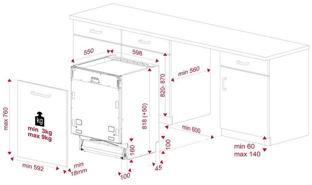 Стандартное значение глубины посудомойки у большинства производителей составляет 55 см. Для правильной установки к этой величине необходимо прибавить около 10 см на размещение шлангов и кабеля, а у встраиваемых моделей еще 5 см составит толщина декоративного мебельного фасада. Таким образом, глубина ниши или тумбы для установки посудомойки должна будет составить не менее 70 см. Для случаев, когда размеры кухонного гарнитура или метраж помещения не позволяют установить посудомойку стандартного размера, можно заменить ее устройством глубиной 54 см или ниже.