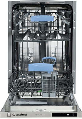 Vestfrost VFDW 4512 — полновстраиваемая посудомоечная машина шириной 45 см. Пользователю доступно три рабочих режима, среди которых интенсивный цикл для сильнозагрязненных кастрюль и сковородок. Электронная панель управления гарантирует комфортную эксплуатацию прибора.