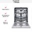 Внутри устройство вмещает до 14 комплектов посуды, что подходит для семьи среднего размера или для тех, кто часто принимает гостей. Наличие шести стандартных программ плюс специализированная «Стекло 90 мин» и интенсивная мойка позволяет гибко подобрать режим для хрупкой посуды, ежедневно используемых тарелок и сильно загрязнённых кастрюль. Режим «половинной загрузки» экономит воду и электроэнергию при небольшой загрузке, а быстрая программа ускоряет цикл, когда время ограничено.