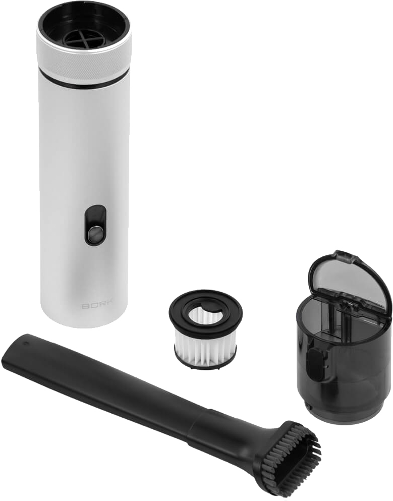 Прибор питается от аккумулятора, поэтому вам придется потратить время на его зарядку, зато в процессе уборки провод сети и удаленность от розетки никак не будут мешать. Предусмотрена удобная система парковки — с которой пылесос занимает меньше места.