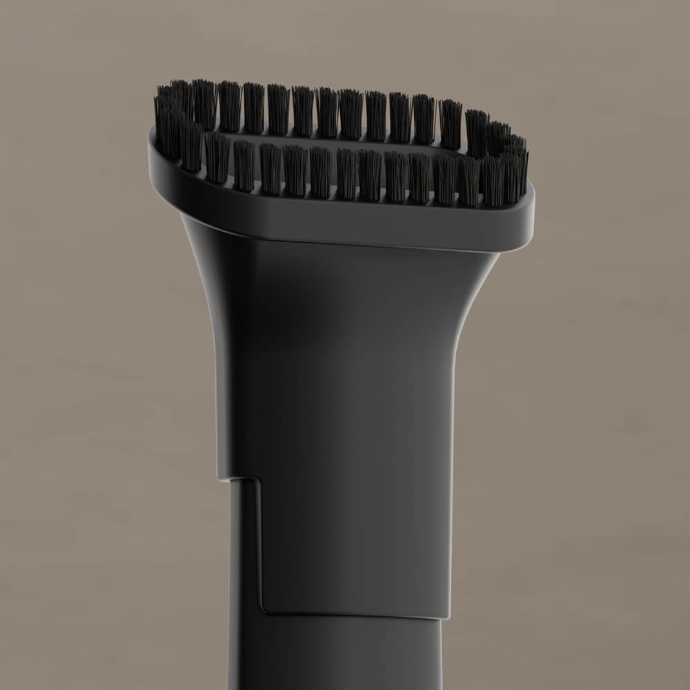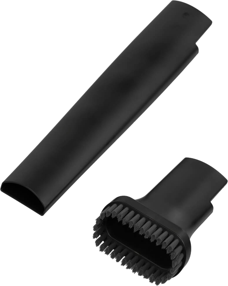 Для удлинения расстояния от корпуса до насадки используется специальная трубка, в данном случае — цельная. Сами насадки можно хранить в предусмотренном для этого отсеке.