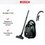 Пылесос Bosch BGL38GOLD имеет стандартную конфигурацию — корпус на колесах, крепящийся к нему шланг с трубками-удлинителями и насадками. Данная модель рассчитана только на сухую уборку, которой достаточно для большинства пользователей. Мощный поток воздуха позволяет быстро всасывать как мелкие, так и крупные частицы, волосы и шерсть. Основной цвет прибора — черный. Пылесборник-мешок — привычный вариант, с которым легко работать, можно не беспокоиться о чрезмерном расходе электроэнергии. Он тщательно запирает внутри крупную пыль, но может незначительно пропускает очень мелкие частицы. Объем заполнения пылесборника — 4 л.