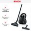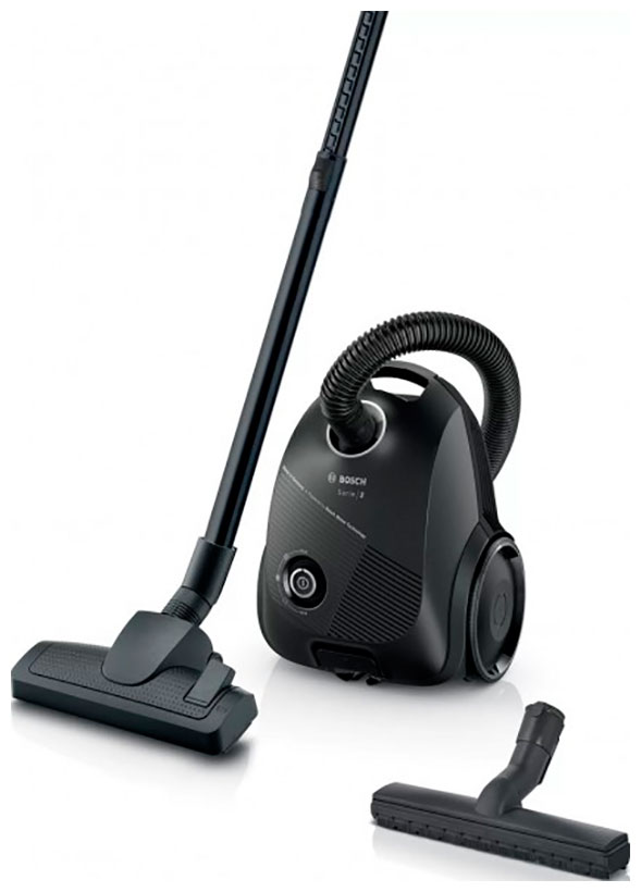 Пылесос Bosch BGLS2BA3D8 имеет стандартную конфигурацию — корпус на колесах, крепящийся к нему шланг с трубками-удлинителями и насадками. Данная модель рассчитана только на сухую уборку, которой достаточно для большинства пользователей. Мощный поток воздуха позволяет быстро всасывать как мелкие, так и крупные частицы, волосы и шерсть. Основной цвет прибора — черный. Пылесборник-мешок — привычный вариант, с которым легко работать, можно не беспокоиться о чрезмерном расходе электроэнергии. Он тщательно запирает внутри крупную пыль, но может незначительно пропускает очень мелкие частицы. Объем заполнения пылесборника — 3.5 л.