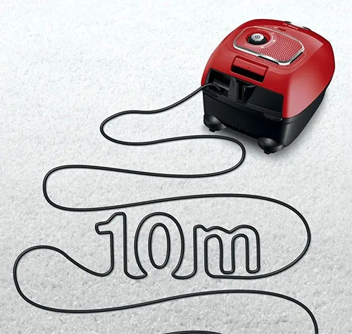 Площадь, которую можно убрать, не включая пылесос в разные розетки. Соответственно, чем длиннее сетевой кабель, тем больше этот показатель и быстрее уборка.