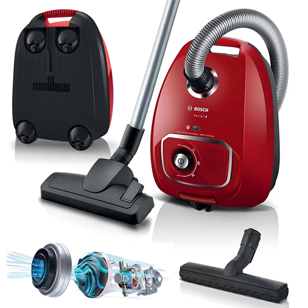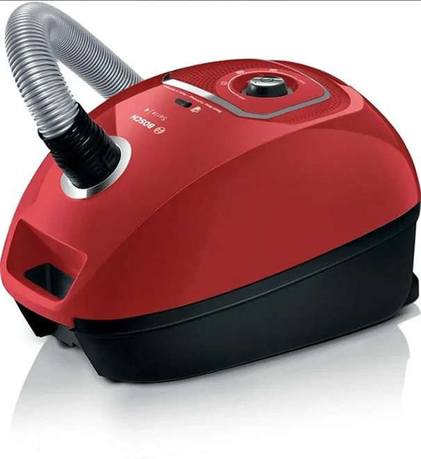 Пылесос Bosch BGLS4X380 имеет стандартную конфигурацию — корпус на колесах, крепящийся к нему шланг с трубками-удлинителями и насадками. Данная модель рассчитана только на сухую уборку, которой достаточно для большинства пользователей. Мощный поток воздуха позволяет быстро всасывать как мелкие, так и крупные частицы, волосы и шерсть. Основной цвет прибора — красный. Пылесборник-мешок — привычный вариант, с которым легко работать, можно не беспокоиться о чрезмерном расходе электроэнергии. Он тщательно запирает внутри крупную пыль, но может незначительно пропускает очень мелкие частицы. Объем заполнения пылесборника — 4 л.