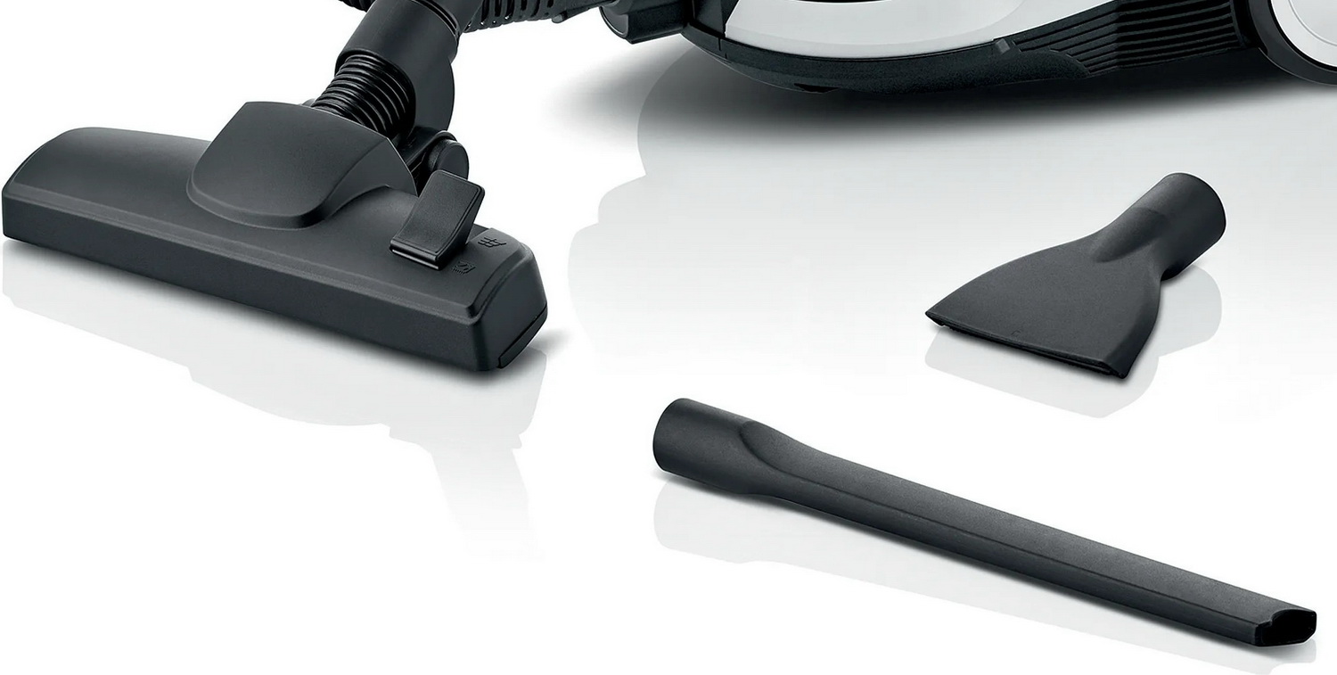 Пылесос Bosch BGS41HYG1 имеет стандартную конфигурацию — корпус на колесах, крепящийся к нему шланг с трубками-удлинителями и насадками. Данная модель рассчитана только на сухую уборку, которой достаточно для большинства пользователей. Мощный поток воздуха позволяет быстро всасывать как мелкие, так и крупные частицы, волосы и шерсть. Основной цвет прибора — белый. В качестве пылесборника производитель установил стандартный контейнер. Пользоваться им легко и удобно: чтобы очистить, просто достаньте его и высыпьте все в мусорное ведро, а затем протрите или вымойте емкость изнутри. Объем заполнения пылесборника — 2.4 л.