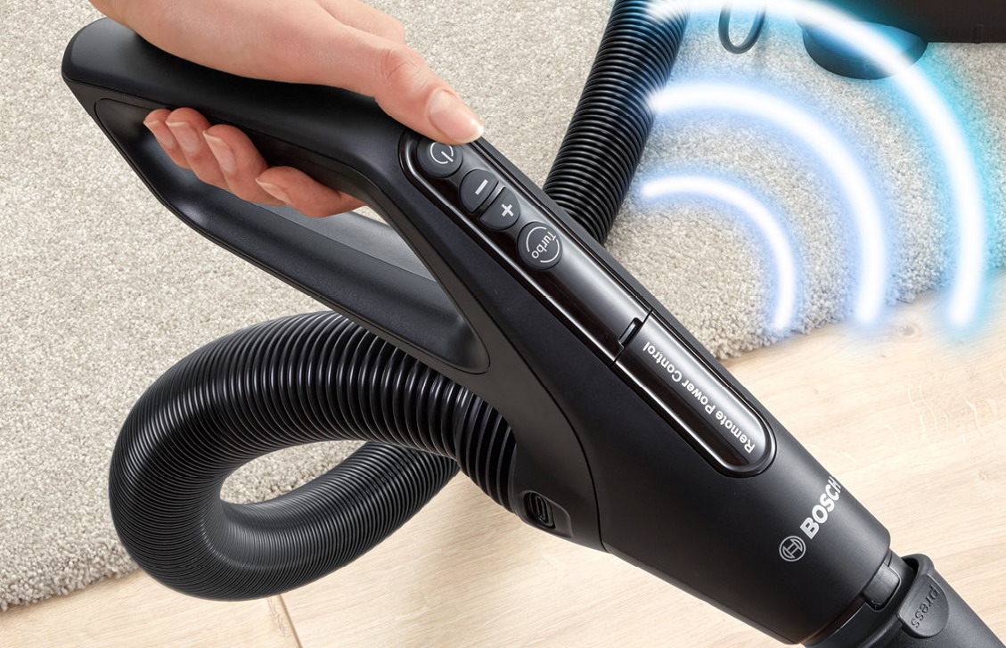Удобная система управления пылесосом располагается прямо на ручке со шлангом или трубкой всасывания — кнопки регулирования и индикатор мощности, а также клавиши включения/выключения.