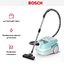Пылесос Bosch BWD420HYG имеет стандартную конфигурацию — корпус на колесах, крепящийся к нему шланг с трубками-удлинителями и насадками. Данная модель рассчитана на сухую и влажную уборку — удобный многофункциональный вариант для семей с детьми, владельцев животных, любителей растений и просто для тех, кто хочет без особых усилий поддерживать дома идеальную чистоту. Основной цвет прибора — голубой. Пылесборник-мешок — привычный вариант, с которым легко работать, можно не беспокоиться о чрезмерном расходе электроэнергии. Он тщательно запирает внутри крупную пыль, но может незначительно пропускает очень мелкие частицы. Объем заполнения пылесборника — 3.5 л.
