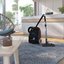 Компактный пылесос на колесах можно установить как вертикально, так и горизонтально — благодаря этому его удобно хранить даже в маленькой комнате. Телескопическая трубка позволяет даже при скромных размерах прибора увеличить площадь уборки — вы можете достать щеткой даже до труднодоступных уголков квартиры. Для сбора пыли используется текстильный многоразовый мешок, один из которых идет в комплекте.