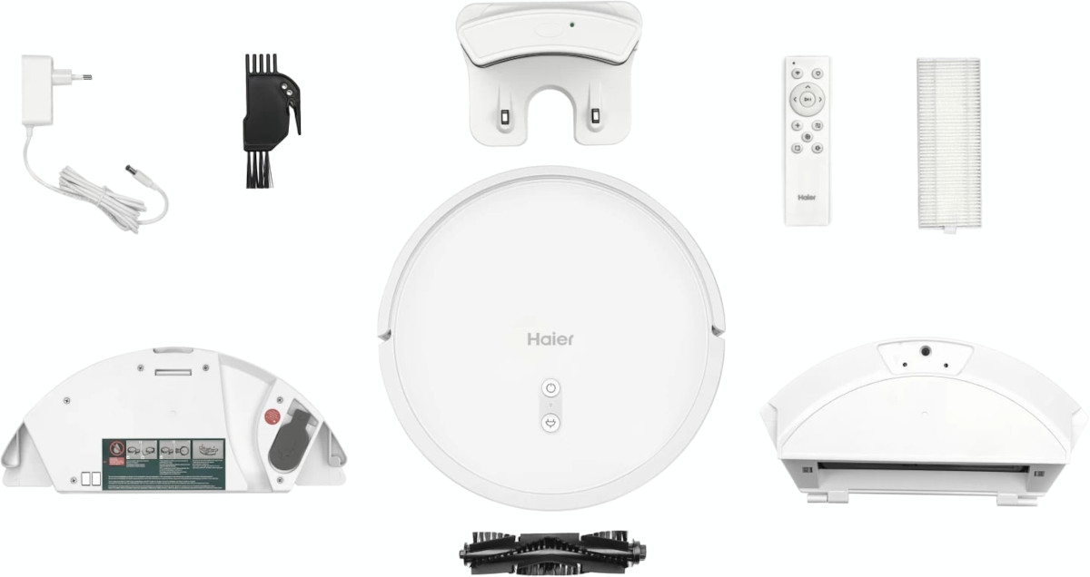 Пылесос Haier HSR Home работает автономно — запустите нужный режим, и робот самостоятельно объедет всю квартиру, удалит пыль и загрязнения. Данная модель рассчитана на сухую и влажную уборку — удобный многофункциональный вариант для семей с детьми, владельцев животных, любителей растений и просто для тех, кто хочет без особых усилий поддерживать дома идеальную чистоту. Основной цвет прибора — белый. В качестве пылесборника производитель установил стандартный контейнер. Пользоваться им легко и удобно: чтобы очистить, просто достаньте его и высыпьте все в мусорное ведро, а затем протрите или вымойте емкость изнутри. Объем заполнения пылесборника — 0.6 л.