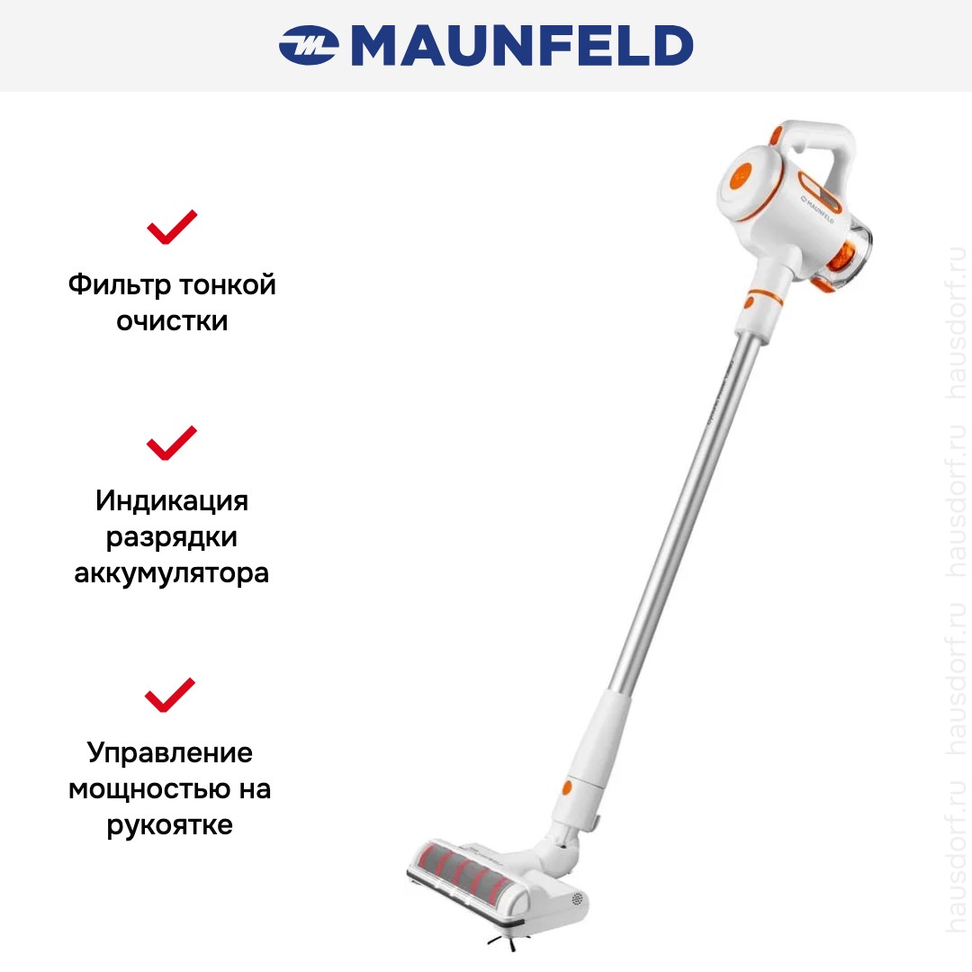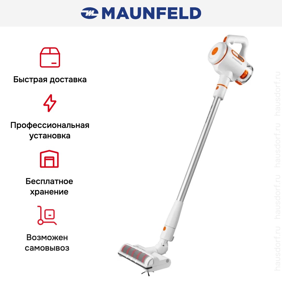 Пылесос Maunfeld MF-2034OR PRO — мощный и мобильный вертикальный агрегат для эффективной сухой уборки, сочетающий высокую производительность, лёгкость и яркий современный дизайн. Оснащённый двигателем на 250 Вт, он уверенно справляется с пылью, шерстью животных, крошками, песком и другим бытовым мусором на различных типах напольных покрытий — от гладкого ламината и керамической плитки до ковров средней ворсистости. При этом масса устройства составляет всего 2 килограмма, что обеспечивает комфорт даже при длительной эксплуатации без усталости в руках.