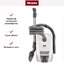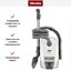 Пылесос Miele SDRB4 Compact C2 имеет стандартную конфигурацию — корпус на колесах, крепящийся к нему шланг с трубками-удлинителями и насадками. Данная модель рассчитана только на сухую уборку, которой достаточно для большинства пользователей. Мощный поток воздуха позволяет быстро всасывать как мелкие, так и крупные частицы, волосы и шерсть. Основной цвет прибора — белый лотос. Пылесборник-мешок — привычный вариант, с которым легко работать, можно не беспокоиться о чрезмерном расходе электроэнергии. Он тщательно запирает внутри крупную пыль, но может незначительно пропускает очень мелкие частицы. Объем заполнения пылесборника — 3.5 л.