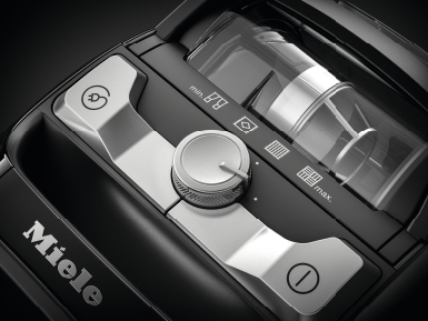 Управление мощностью на корпусе пылесоса производится при помощи поворотного переключателя или кнопок с обозначениями «+» и «-». Расположение управляющих элементов на корпусе — особенность напольных пылесосов: кнопки на них достаточно велики, чтобы нажимать их можно было не только рукой, но и ногой.
