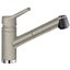 Специальная насадка позволяет выдвинуть излив как маленький шланг и направить струю в слишком высокую кастрюлю, которая не помещается под стационарным краном, на овощи в раковине, на загрязнения в неудобных уголках мойки, которые нужно удалить и т.д. Благодаря особой конструкции вы можете также направить воду из раковины в ванну или из одной чаши мойки в другую одним поворотом крана в нужную сторону. Дополнительная деталь, которая повышает комфорт использования, — аэратор. Он делает поток воды мягче, насыщая его кислородом, таким образом дополнительно уменьшая ее расход: объем струи увеличивается за счет воздуха, а не за счет повышения напора из водопровода.