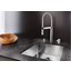 Внутри крана помещается шланг, который можно растянуть, чтобы достать струей воды до второй чаши мойки или тщательно сполоснуть посуду.