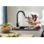Внутри крана помещается шланг, который можно растянуть, чтобы достать струей воды до второй чаши мойки или тщательно сполоснуть посуду.