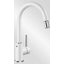 Специальная насадка позволяет выдвинуть излив как маленький шланг и направить струю в слишком высокую кастрюлю, которая не помещается под стационарным краном, на овощи в раковине, на загрязнения в неудобных уголках мойки, которые нужно удалить и т.д. Благодаря особой конструкции вы можете также направить воду из раковины в ванну или из одной чаши мойки в другую одним поворотом крана в нужную сторону. Дополнительная деталь, которая повышает комфорт использования, — аэратор. Он делает поток воды мягче, насыщая его кислородом, таким образом дополнительно уменьшая ее расход: объем струи увеличивается за счет воздуха, а не за счет повышения напора из водопровода.