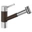 Внутри крана помещается шланг, который можно растянуть, чтобы достать струей воды до второй чаши мойки или тщательно сполоснуть посуду.