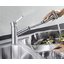 Внутри крана помещается шланг, который можно растянуть, чтобы достать струей воды до второй чаши мойки или тщательно сполоснуть посуду.