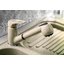 Внутри крана помещается шланг, который можно растянуть, чтобы достать струей воды до второй чаши мойки или тщательно сполоснуть посуду.