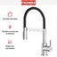 Выдвижной излив в кухонном смесителе — это гибкая трубка из резины в металлической оплетке, расположенная внутри основного излива. Для того, чтобы воспользоваться гибким изливом — например, наполнить высокую посуду, — достаточно включить воду и потянуть за головку, находящуюся на конце трубки.