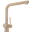 Выдвижной излив в кухонном смесителе — это гибкая трубка из резины в металлической оплетке, расположенная внутри основного излива. Для того, чтобы воспользоваться гибким изливом — например, наполнить высокую посуду, — достаточно включить воду и потянуть за головку, находящуюся на конце трубки.