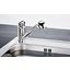Внутри крана помещается шланг, который можно растянуть, чтобы достать струей воды до второй чаши мойки или тщательно сполоснуть посуду.