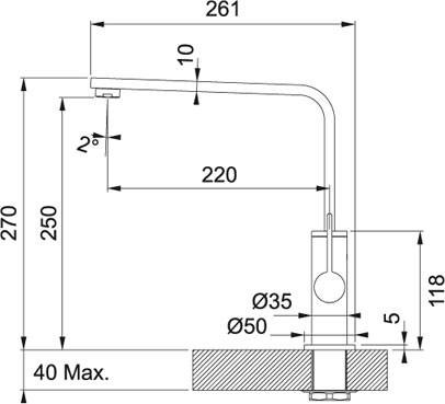 - Угол поворота излива: меньше на 180 °