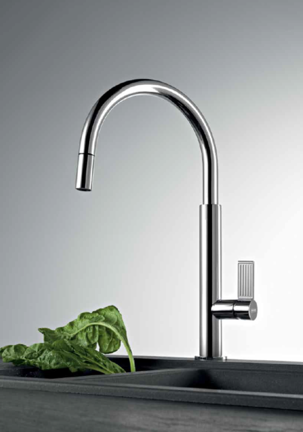 Специальная насадка позволяет выдвинуть излив как маленький шланг и направить струю в слишком высокую кастрюлю, которая не помещается под стационарным краном, на овощи в раковине, на загрязнения в неудобных уголках мойки, которые нужно удалить и т.д. Благодаря особой конструкции вы можете также направить воду из раковины в ванну или из одной чаши мойки в другую одним поворотом крана в нужную сторону.