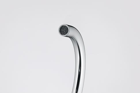 Поворотный излив означает, что вы сможете направить поток воды не только по центру, но и в сторону — и даже с раковины в ванну, если излив достаточно длинный. Угол поворота может быть разным, в зависимости от того получится сдвинуть кран на 180 или 360 градусов. С таким изливом проще мыть посуду и продукты, крупные предметы.