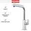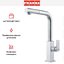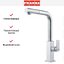 Высота излива 31,5 см и общая высота 34,8 см дают достаточно пространства для наполнения высоких ёмкостей и удобной работы с крупной посудой. Длина излива 21,6 см обеспечивает хороший досягаемость в глубоком моечном пространстве. Выдвижной излив добавляет мобильности: его удобно направлять в любую точку мойки, ополаскивать овощи или заполнять кастрюли с плиты. Поворот на 360 градусов делает конструкцию универсальной для двойной мойки и обеспечивает полную свободу манёвра.